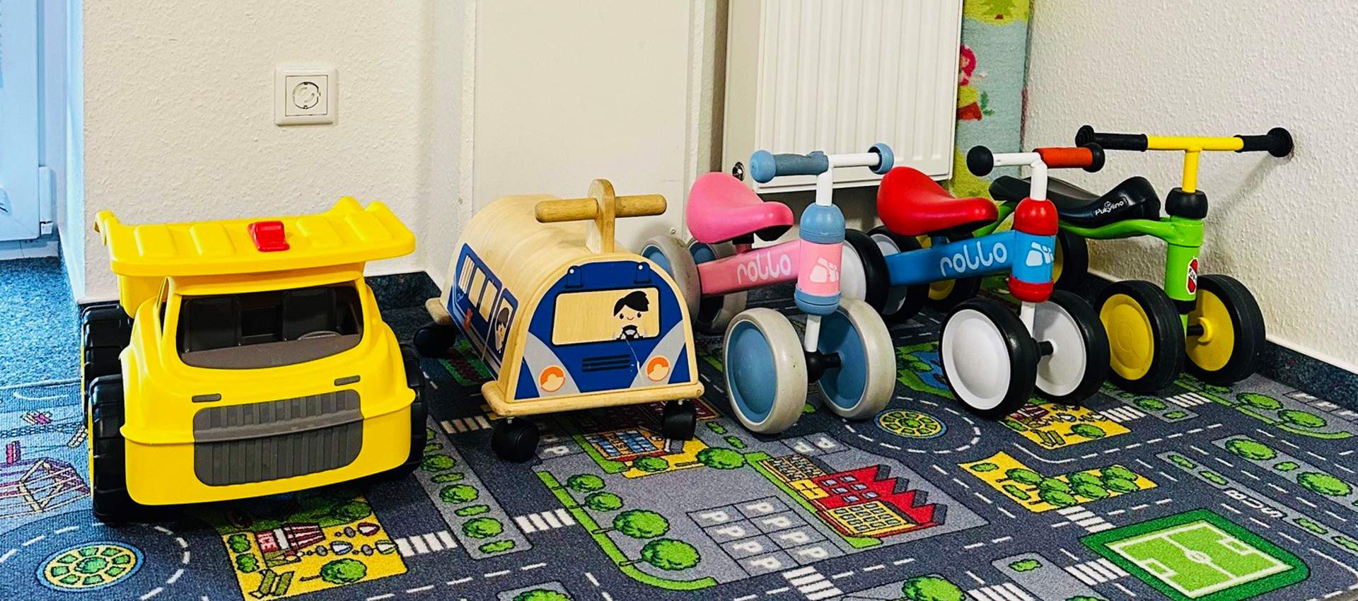 Bei den ‚Bunten Pusteblumen‘ hat jedes Kind seine eigene Farbe – Rot, Blau, Grün, Orange oder Lila. Diese Farbe markiert die Garderobe, das Handtuch und die persönlichen Materialien. Das gibt den Kindern Orientierung, stärkt ihre Selbstständigkeit und vermittelt das Gefühl: ‚Das ist mein Platz, hier gehöre ich hin.‘